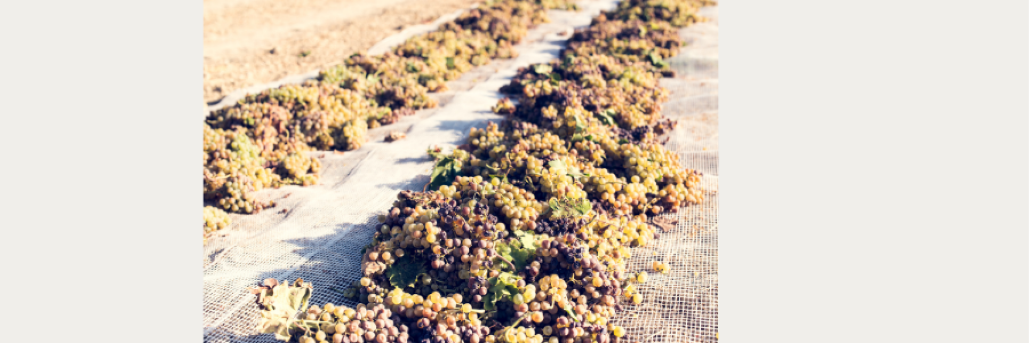 Pedro Ximénez grapes drying in the sun to concentrate the sugars